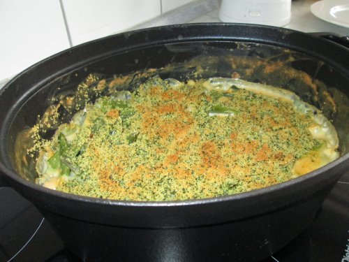 Den Spinat habe ich weggelassen, da mir die Fetzen auf dem Bild einfach zu groß waren und ich auch keinen Rahmspinat mehr im Haus hatte. Den Knoblauch habe ich weggelassen, da mir der einfach nicht schmeckt und den Meerrettich gab es mal wieder nicht zu kaufen also musste ich den auch weglassen.
