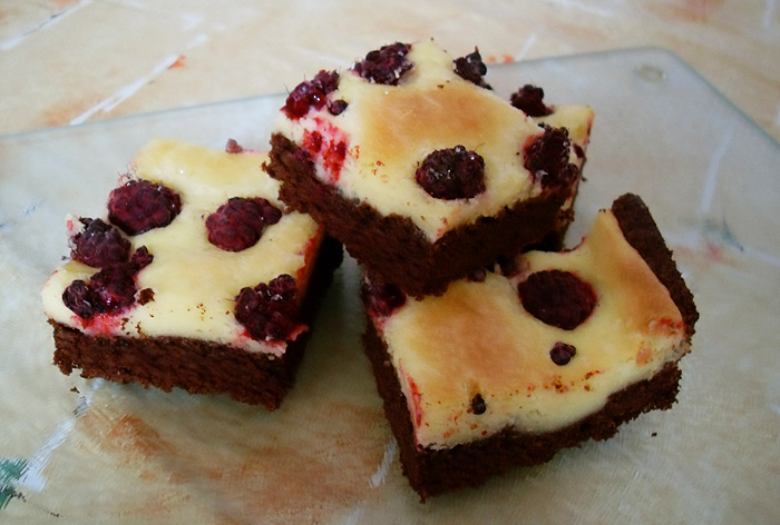 Brownies mit Himbeeren und Frischkäse: