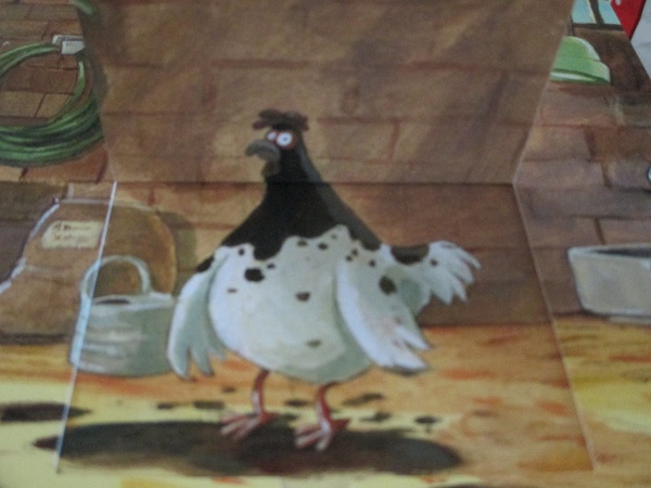 Meiner Tochter gefiel am besten das Huhn im Schweinestall. Zunächst sieht man das saubere Huhn, wie es vergnügt Matsch in die Höhe wirft. Aber irgendwann kommt dieser wieder runter und wie das dann aussieht, sieht man, wenn man eine Klappe nach oben schlägt. Ganz betröppelt steht das Huhn dann da und ist voll mit Matsch.