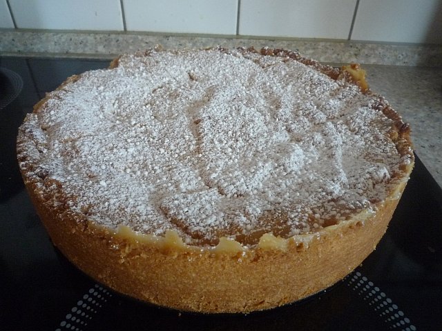 Heute habe ich einen gedeckten Apfelkuchen mit Vanillepudding gemacht. Die hälfte ist schon weg