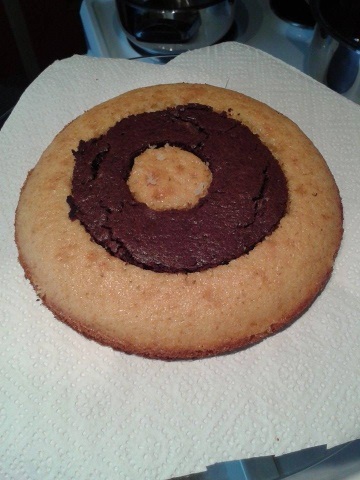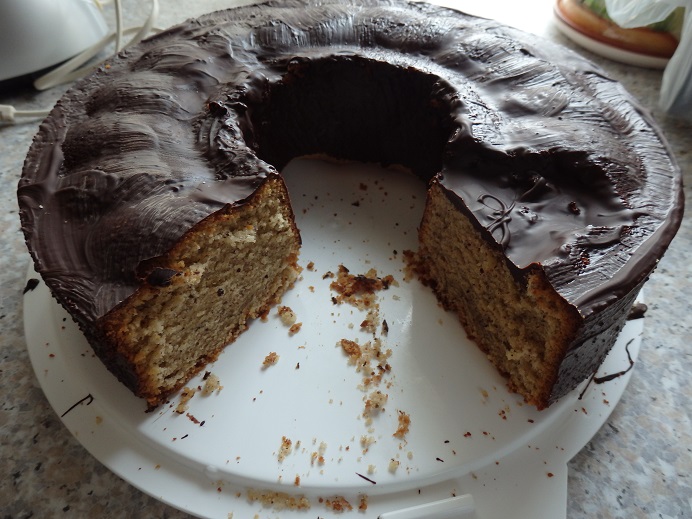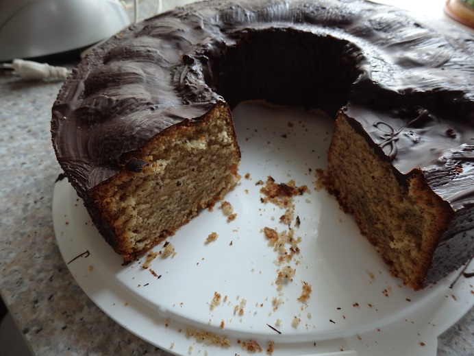 Nächstes Mal würde ich eventuell irgendeine Sahnecreme oder ähnliches dazwischen packen, jetzt war es nur eine Schokocreme und der Kuchen war ziemlich trocken.
