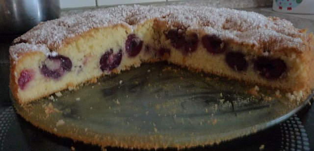 Ich hatte noch Kirschen übrig und da habe ich diesen schnellen Schlupfkuchen mit Kirschen gemacht.