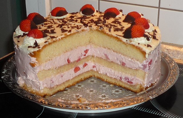 Heute gab es bei uns diese Erdbeersahnetorte und Käsekuchen Muffins.