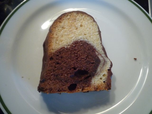 Bei uns gibt es am WE einen Marmorgugelhupf mit Schokoüberzug.