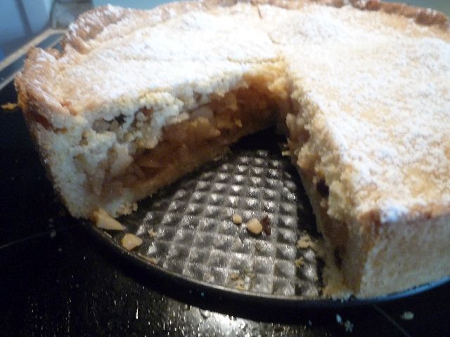 Ja ich backe jedes Wochenende. Gedeckter Apfelkuchen ist auch einer meiner liebsten Kuchen. Leider ist das Bild ein bisschen verwackelt. -
