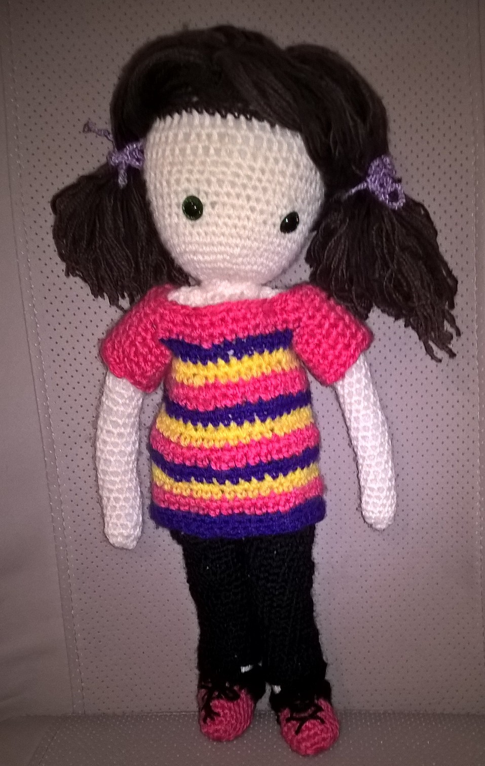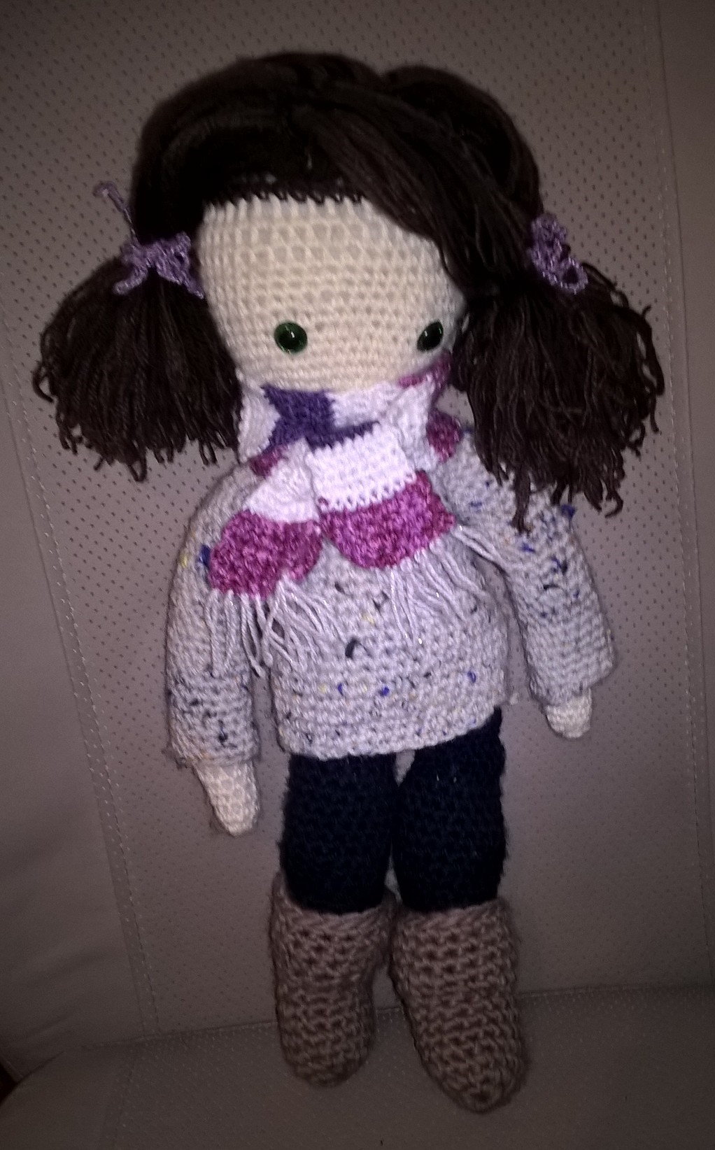 ich hoffe, das hier ist der richtige Ort, denn ich würde euch gerne jemanden vorstellen - und zwar meine Häkelpuppe Hannah. Seit nun mehr drei Jahren bin ich glückliche Häkelpuppenmai und Besitzerin des wundervollen Buches "Meine Lieblingspuppe zum Häkeln", nach dessen Anleitung ich meine süße Hannah gehäkelt habe. ^^