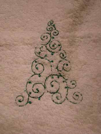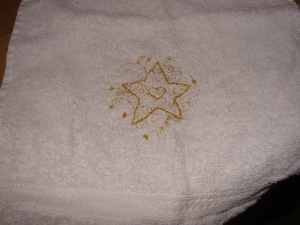 Die nächste Weihnachtsgeschenkeproduktion: Bestickte Handtücher für die Musiklehrer mit viel Glitzer.