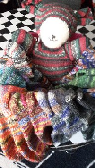 Meine Erfahrung ist eher die, dass ich einmal bös angemacht wurde, als ich wagte, an Heiligabend bei der Verwandtschaft ohne Socken anzukommen. Nie wieder, hab ich mir geschworen. Deshalb kriegt dieses Jahr jeder zwei Paar. Nach Musterstrickerei (Patchwork!) war mir dieses Jahr nicht, nur nach entspanntem glatt rechts.