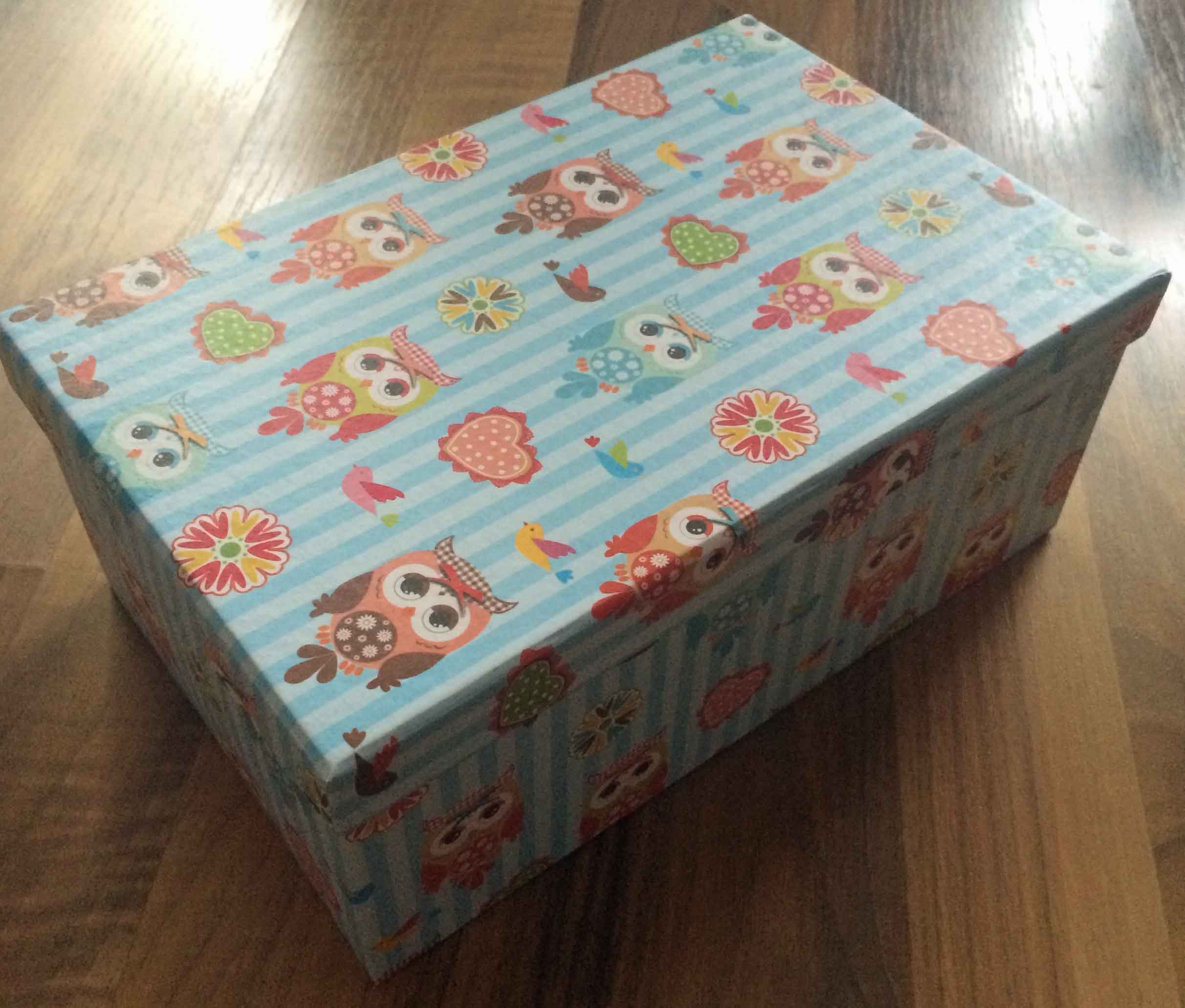 Mein Päckchen sieht voll toll aus. Im Päckchen selbst war erstmal ein voll cooler Eulenkarton (Foto 1).