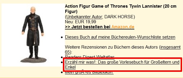 Aber naja, so einen kleinen Tywin kann man sich ja unters kopfkissen legen, und ihn dort vor Staub schützen... man darf ihn halt nicht zerquetschen...