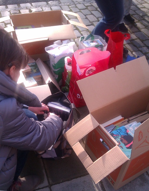 Endlich, endlich konnten auch wir einmal unsere ausgemisteten Bücher gleich in ganzen Koffer-, Trolley- und Autoladungen loswerden.