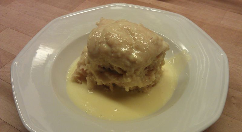 Von dem heute Morgen habe ich ein Foto vergessen. Vielleicht denke ich beim nächsten Mal dran, dann folgt noch eines. Dieses hier ist von gestern Abend mit Vanillesauce.