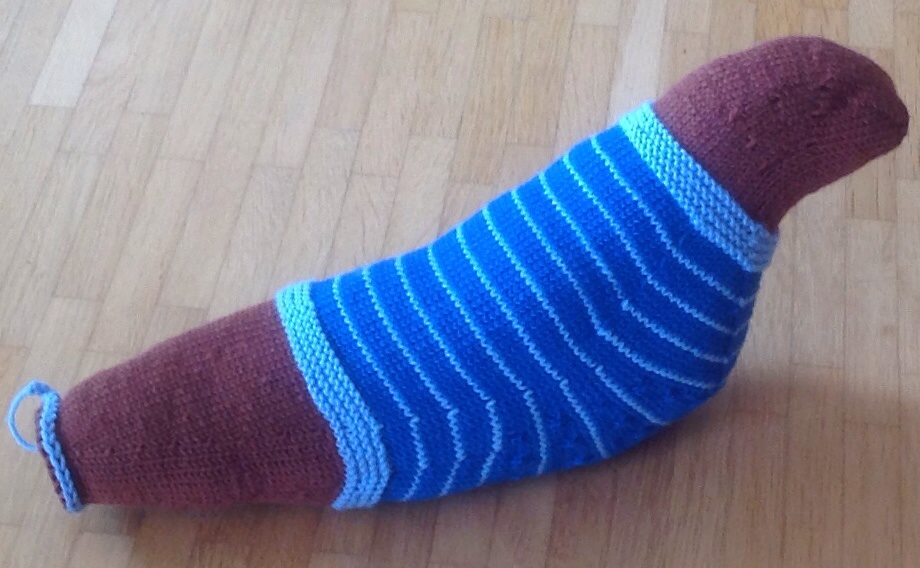 Warum soll man den das Ganze vor dem Abstricken auf Links drehen? Kannte ich bis dahin überhaupt nicht!Ich hatte diese Woche frei und daher viel Zeit zu stricken. Nach dieser Woche sieht mein Walross so aus:
