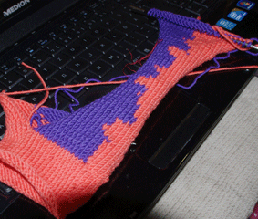 die Waben sind auch fies - egal wie ich die mache - Intarsien in Rauten sind mit den vielen Wollfäden im Hintergrund gemein Wollfressend - Das Wabenmuster sieht nicht so toll aus, wie ich dachte, außerdem raffen die Maschen, so dass man noch ein wenig Reihen ausgleichen muss.