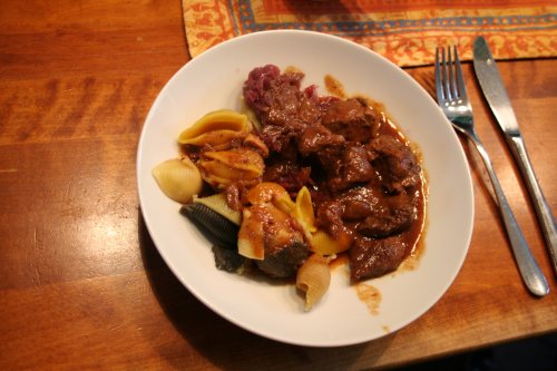 Dazu gab es Nudeln und Rotkohl (aber den aus dem Glas... :chen).