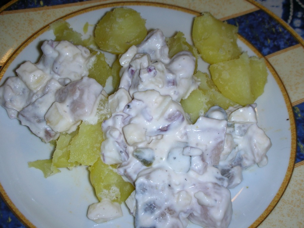 Heute gabs bei uns den Matjes nach Hausfrauenart, dazu Bratkartoffeln.