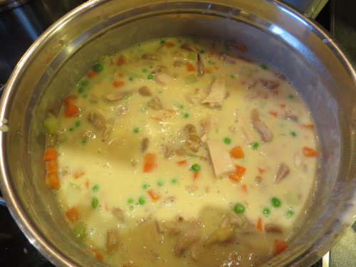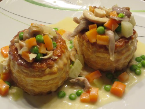 Dann ging es nach Rezept weiter. Die Zubereitung ist simpel. Falls jemand keine Erfahrung mit Mehlschwitzen hat: Rühren, rühren, rühren. Dann gibt es keine Klümpchen.Serviert habe ich es in Blätterteigpasteten. Der Geschmack war himmlisch.