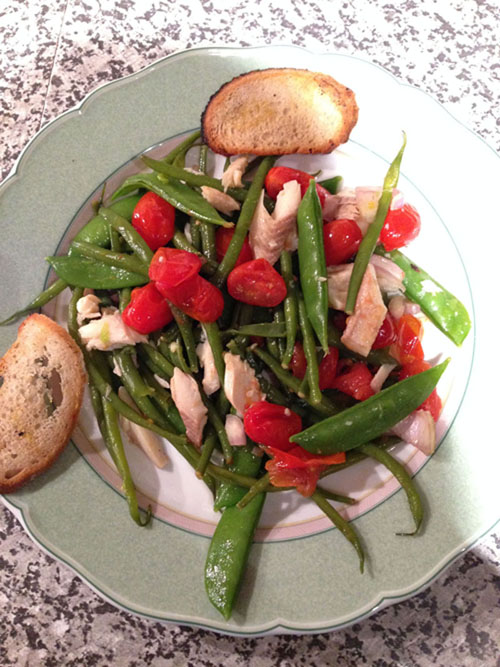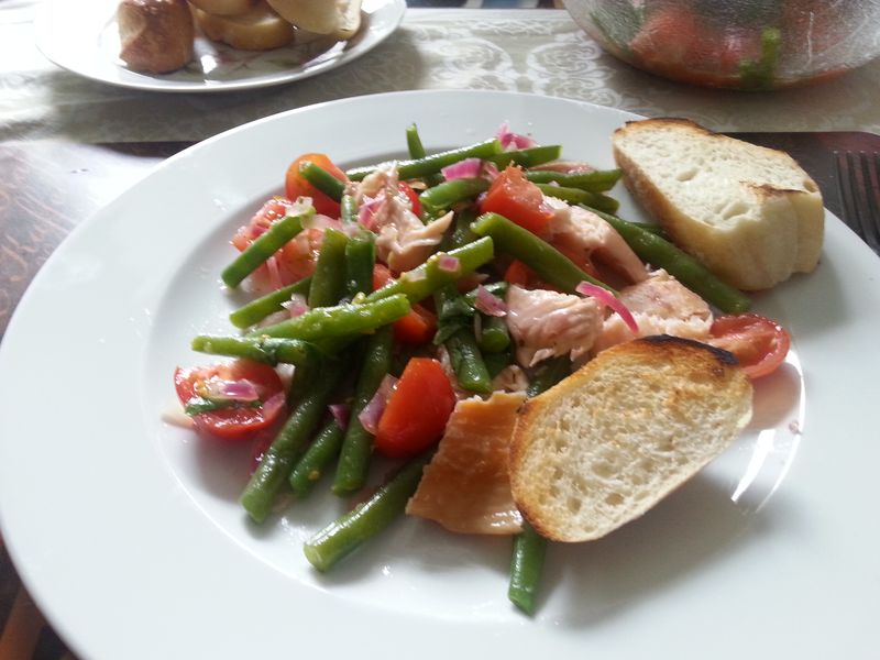 Tomaten-Bohnen-Salat mit Röstbrot und Saibling, S. 117