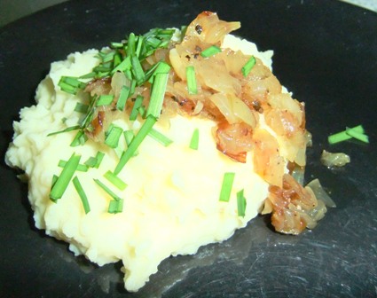 Käse-Kartoffelpürree mit Zwiebelstippe