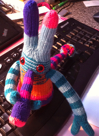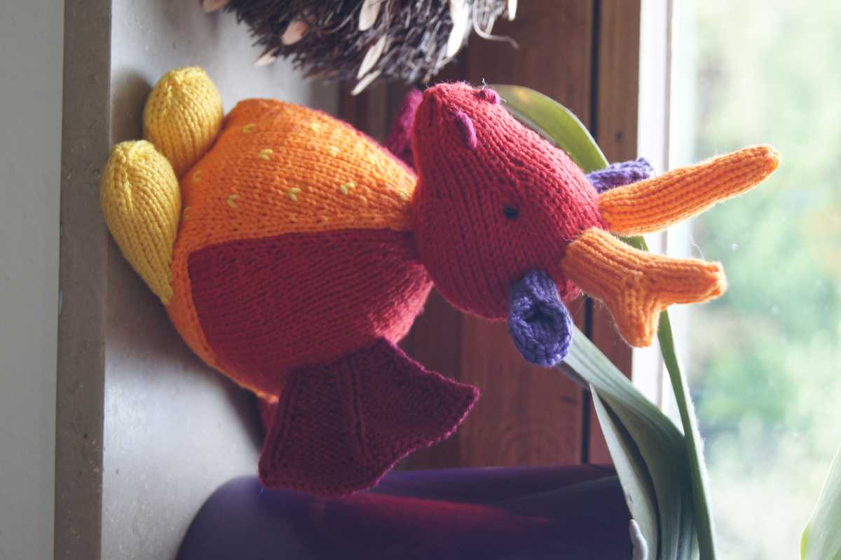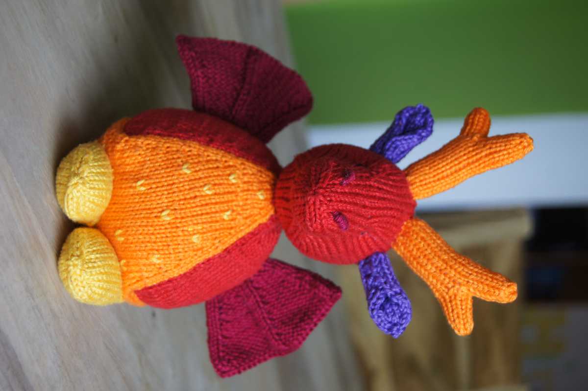 Leider ist mir bei der kleinen ein Fehler unterlaufen, als ich Bauchlatz und Rücken für den Schwanz zusammen weitergestrickt habe, da mir dabei ein Teil verdreht ist. Foto habe ich keines mehr davon, hat aber irgendwie an ein Möbiusband erinnert.
