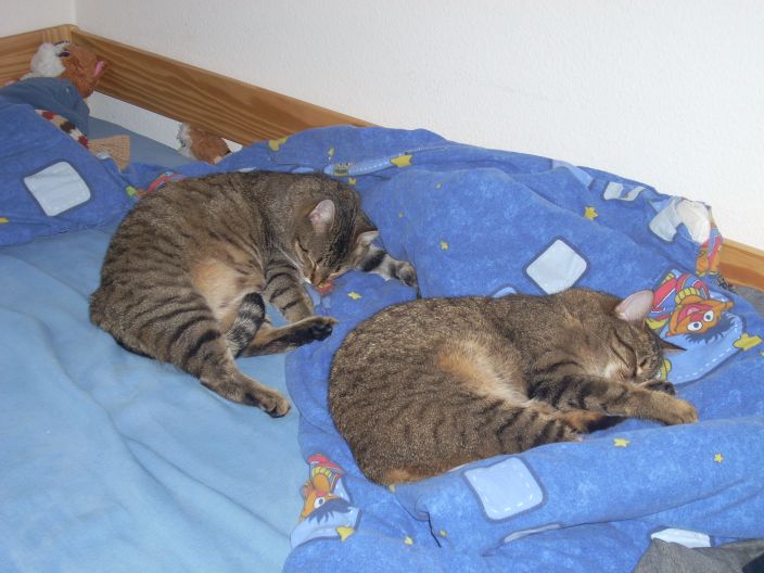 ich wollte auch keine Katzen haben, aber ich wurde überstimmt! Und als Bauch- oder sonstiger Wärmer sind unsere eh nicht zu gebrauchen (der Kater wäre mit seinen 8kg auch viel zu schwer...), das sind Freigänger durch und durch. Ab und an lassen sie sich gnädiglich mal streicheln, aber ansonsten habe ich hier die Funktion des Dosen- und Türöffners und mehr nicht.Allerding könnte ich mir gut vorstellen, dass sie in Symbiose mit Rüdiger leben könnten - Mäuse einfrieren bräuchte hier jedenfalls niemand, da gibt's täglich frische Ware!