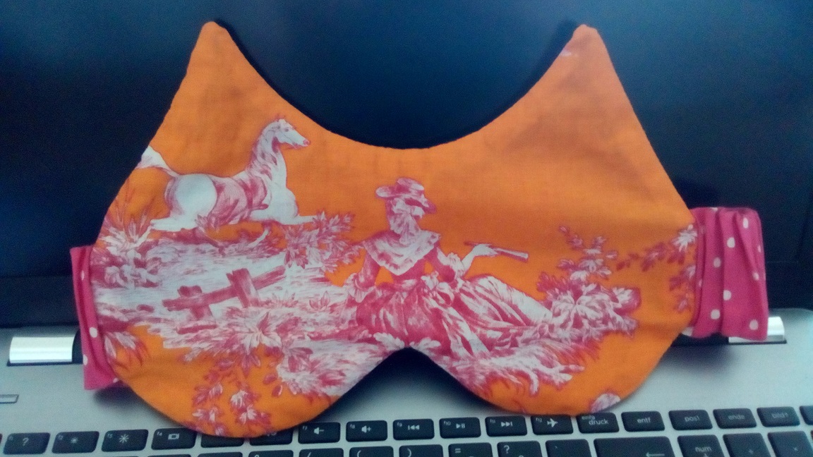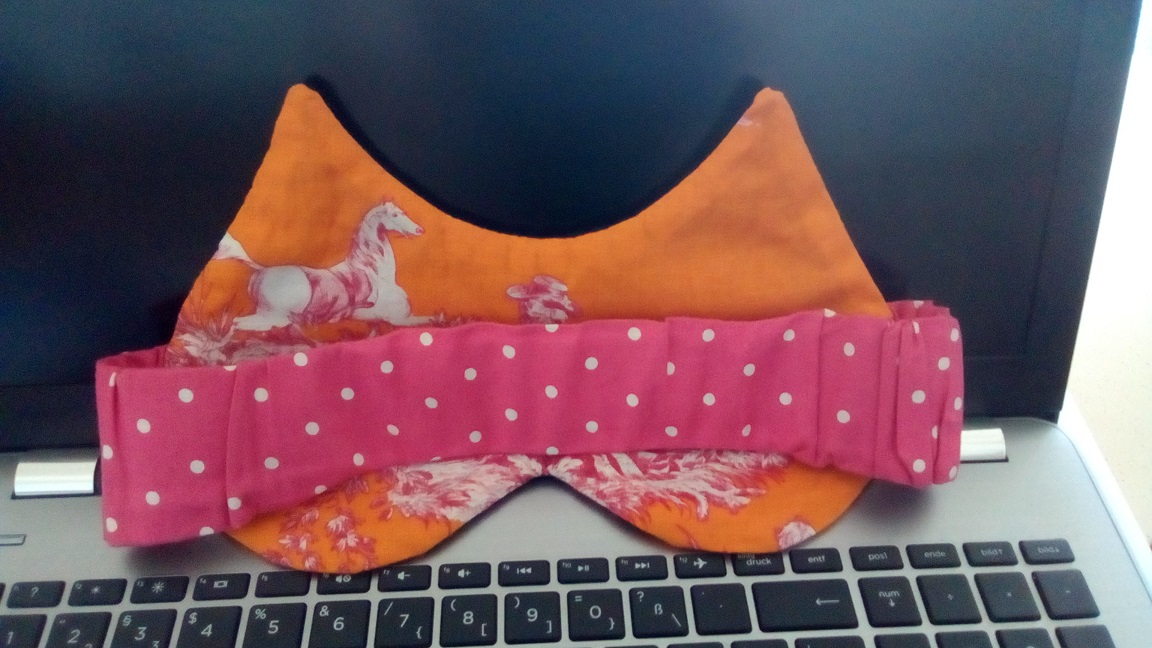 Sie trägt sich gut. Viel besser, als die man so im Laden bekommt. Bei den gekauften hatte ich ja immer das Problem, dass die so auf die Nase gedrückt haben, dass ich morgens eine Druckstelle hatte. Und sobald ich mich bewegt habe, ist sie ein wenig verrutscht und schon waren meine Augen nicht mehr richtig bedeckt, weil die so klein sind.
