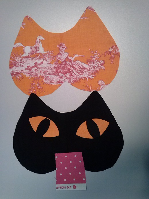 Die Katze ist auf dem Stoff übertragen und die Stoffe für Augen, Pupillen und Nase sind mit Appliziervlies verstärkt.