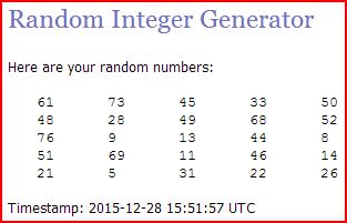 Und dann einen Zufallsgenerator um 25 Zahlen, praktischerweise direkt im 5x5 Muster, gebeten:
