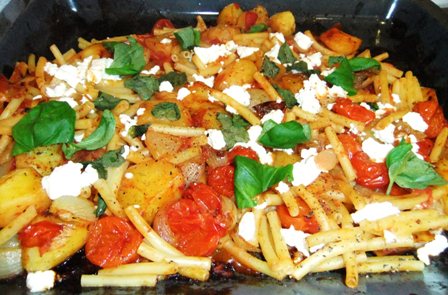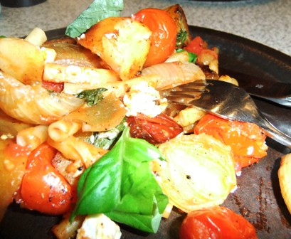 Nach Euren begeisterten Berichten habe ich heute auch die Süß-klebrige Tomaten und Zwiebeln vom Blech gemacht.