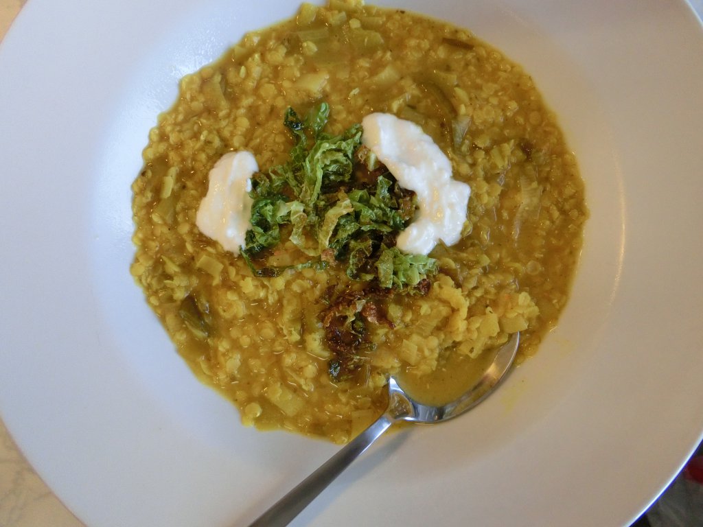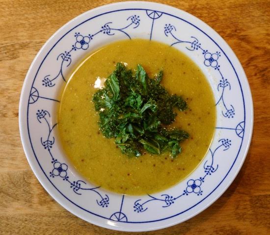 Zitronige Linsensuppe (mit knusprigem Grünkohl)