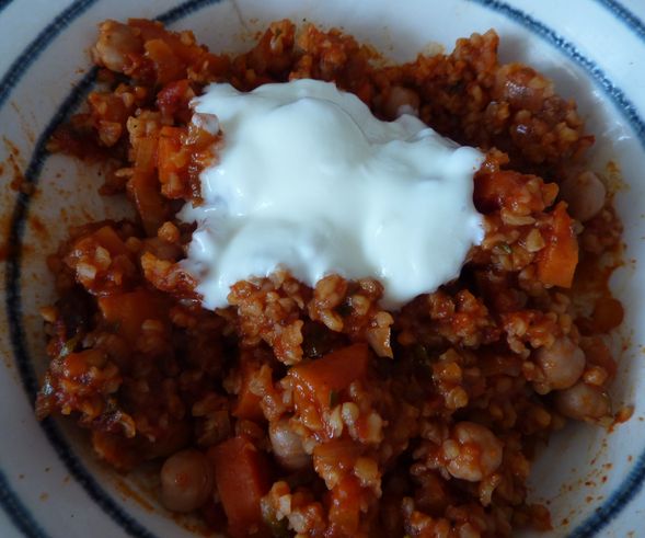 Püriert habe ich das ganze dann am Schluss nur teilweise.. Bei mir gab es dann ein wenig frische Petersilie drüber und ich hatte von dem Kichererbsen-Eintopf noch Safran-Johgurt übrig, von dem ich auch einen kleinen Klecks verwendet habe..