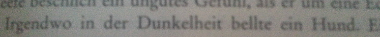 "Sie begegneten niemandem, hörten nur in der Ferne einen Hund bellen." (S. 443, HC-Ausgabe)