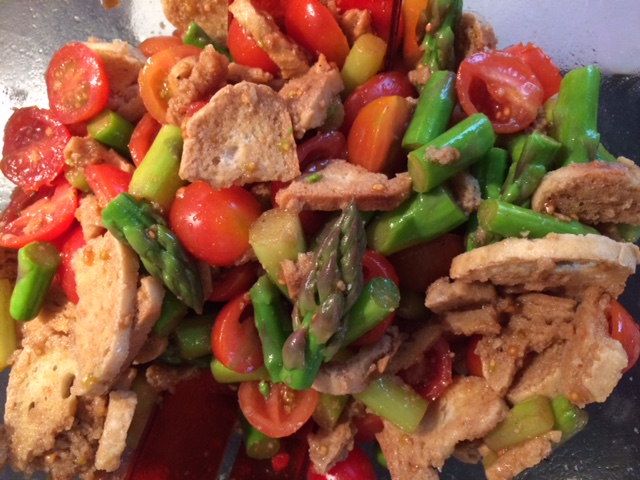 Der Salat passt ja gerade zur Jahreszeit. Es gab in unserem Rewe keinen grünen Spargel, der irgenwie essbar aussah und so habe ich eben weißen genommen. Schmeckt super.