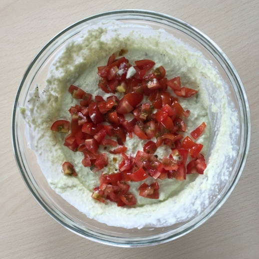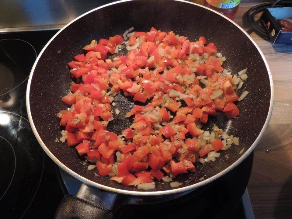 Da ich nur Cerrytomaten hatte, habe ich eine Handvoll davon genommen und untergerührt.