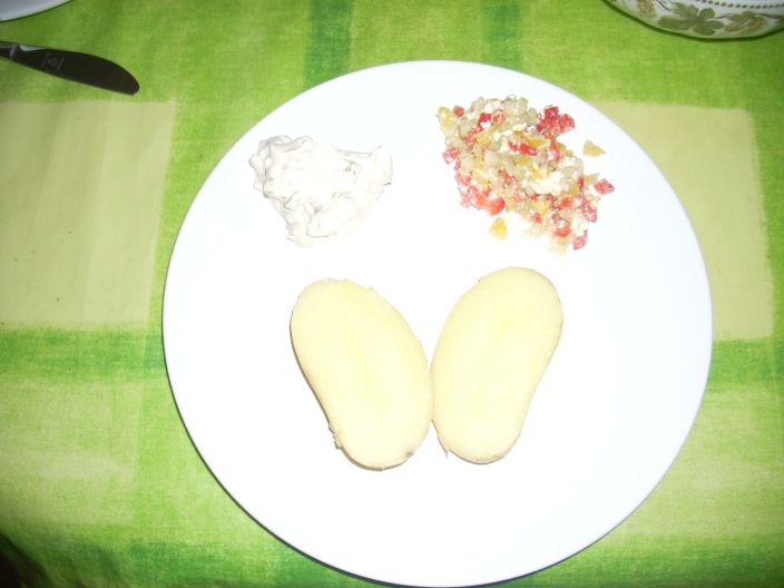 Pellkartoffeln mit Gurken-Paprika-Salsa und Speckschmand (S. 113)