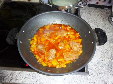 Speck mit Kapern und Hähnchengeschnetzeltes mit Estragon.