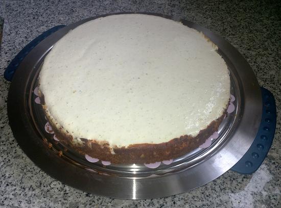 Der Teig ließ sich gut zubereiten und problemlos in die Form (26cm Durchmesser) drücken. Bild im RohzustandFüllung: Zubereitung ging schnell und einfach, obwohl ich den Kuchen sofort mit dem Messer vom Rand getrennt habe, gab es einen kleinen Riß. Am Rand ist die Füllung ziemlich dunkel geworden.