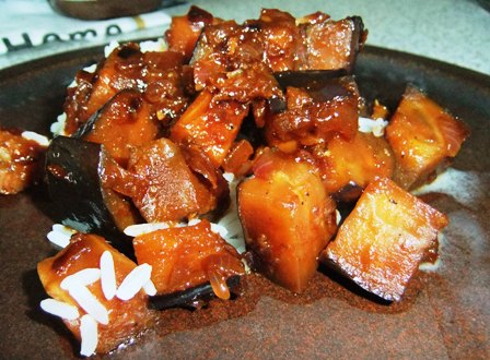 Es hat mega lecker geschmeckt. Sogar mein Mann, der nicht so ein Gemüse-Fan ist fand es sehr gut. Die Kombination von Auberginen mit dem braunen Zucker, dem Ingwer und dem Harissa war geschmacklich super. Dieses Auberginen-Gericht wird es bestimmt öfter bei uns geben. Von mir bekommt es eine glatte Note 1.