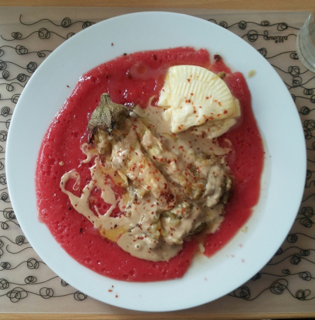 und statt dem gerösteten Sesam als Garnierung habe ich einen TL meiner Tahini hineingerührt, hab ja noch ein Glas voll :grin.
