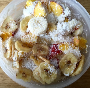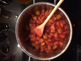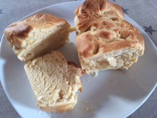 French Toast mit Pflaumenchutney (bei mir Pfirsich-Aprikose-Traubensaft statt Rotwein) und Challa-Brot von Seite 28
