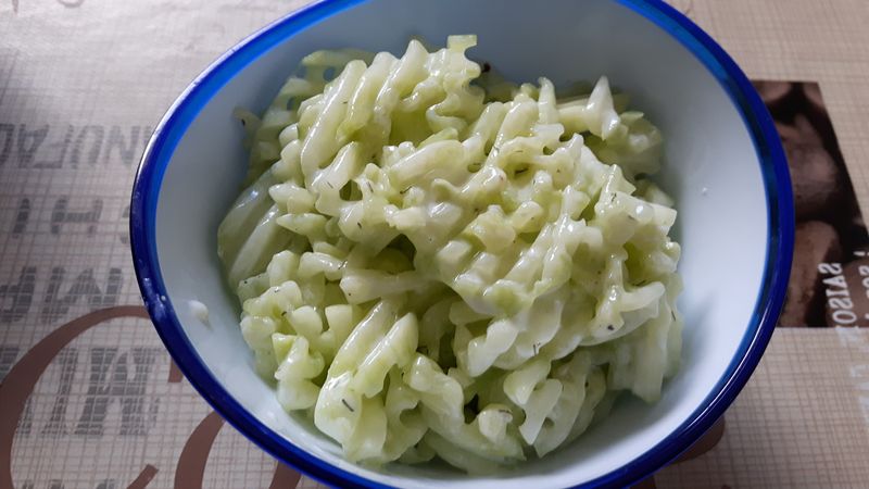 Bei uns gab es am Samstag auch den Gurkensalat. Eigentlich wollte ich die Wirsinglasagne ausprobieren, da meine Schwiegermutter aber zweimal in der Woche für uns kocht, und sie für Dienstag irgendwas mit Wirsing angekündigt hat, musste ich umdisponieren.