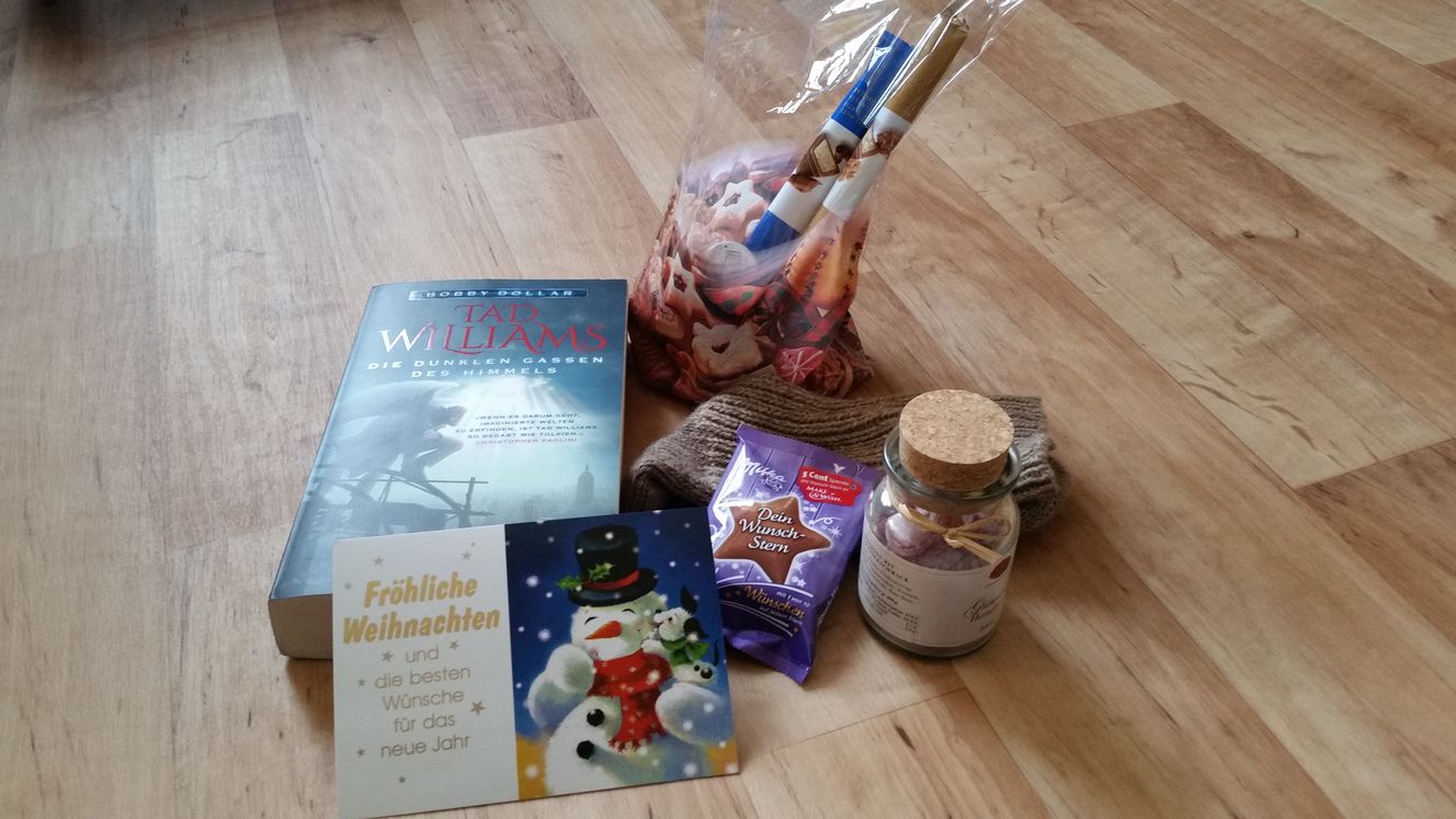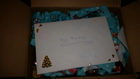 Vom Paket selbst habe ich leider nur ein schlechtes Bild, aber es war sehr hübsch mit Weihnachtssticker verziert. Im Paket waren