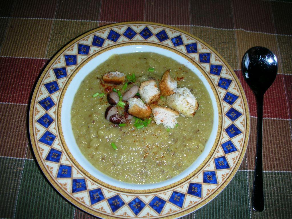 Die Suppe ist lecker, keine Frage. Durch den Apfel leicht fruchtig, Ingwer gibt etwas Schärfe und die Bohnen zum Garnieren finde ich wichtig.
