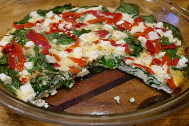Auch hier habe ich ein paar kleine Änderungen vorgenommen, 1 orange Paprika musste noch weg (aber die deutlich dünneren Spitzpaprika schmecken sicher besser darin), TK Spinat, statt Emmentaler einen kräftigeren Käse. Den mag ich normalerweise deutlich lieber als Emmentaler, aber hier meine ich rückblickend, dass ein geschmacksneutralerer Käse wohl besser passt. Auf die Avocado als Beilage habe ich verzichtet.