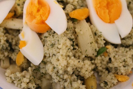 Ich habe erst den Spargel normal im Wasser gegart und dann in die Pfanne dort bissl angebrutzelt dann die Hirse rein alles vermengt und gewürzt und Eierstückchen dazuich fand es sehr lecker da ich gerne Hirse esse geht bestimmt auch mit Couscous oder Bulgur