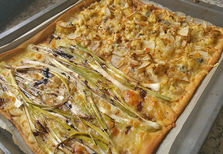 Pizza mit geröstetem Blumenkohl und Birnen (S. 95)