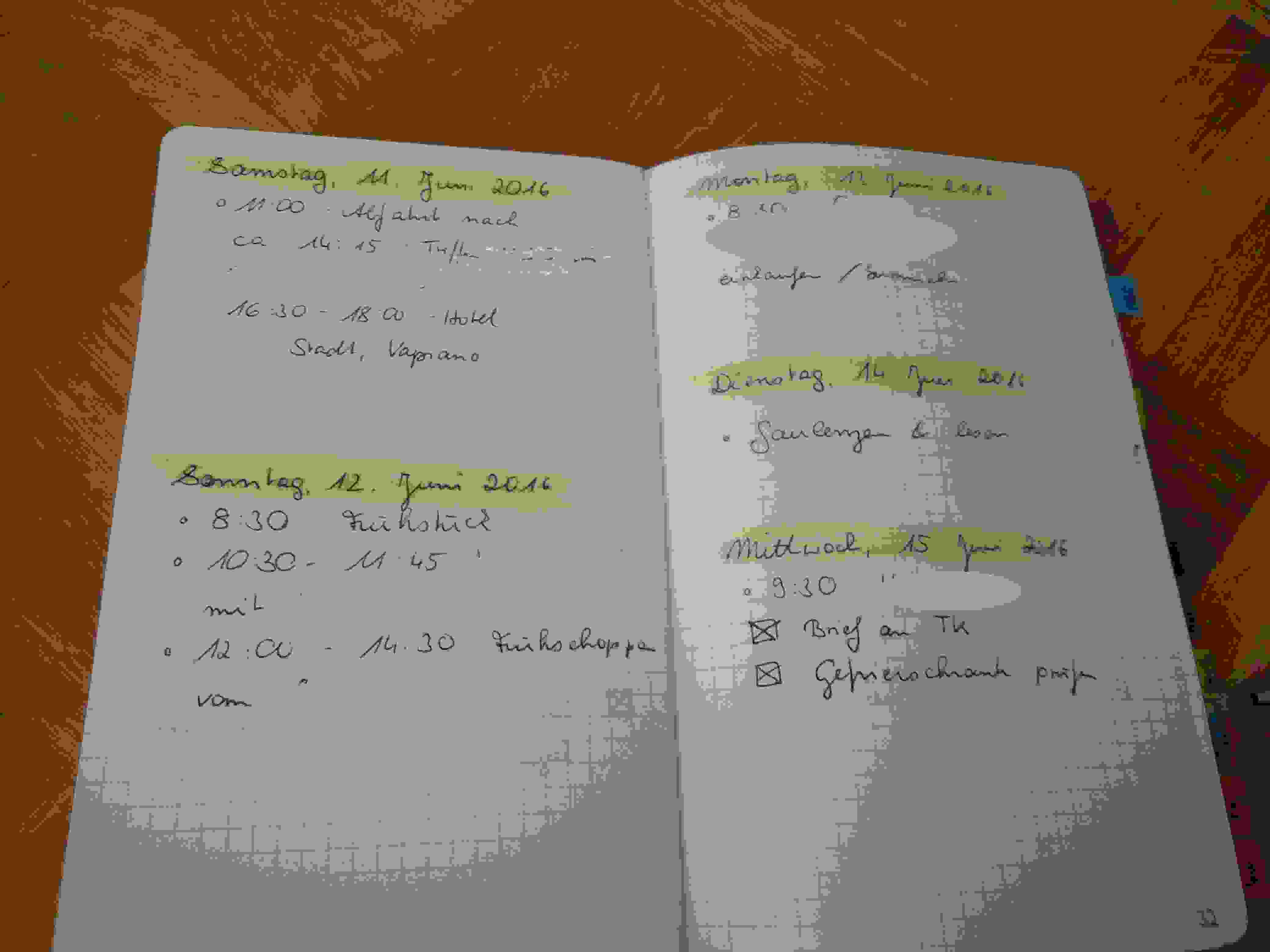 So was hatte ich früher - also dass ich Seiten, die ich nicht gebraucht habe, angepasst hatte. :-) Im Kloster hatte ich dann immer einen Tischkalender, weil ich es perfekt fand, die Zeiten "richtig" eintragen zu können. :-)