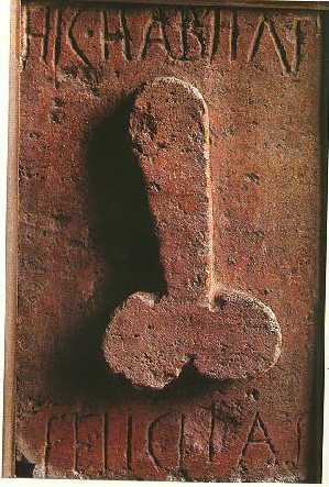 Besonderes Beispiel ist eine Gruppe junger Damen, die unter dem Motto »Hic habitat felicitas!« ein römisches lupanar "betreiben". -