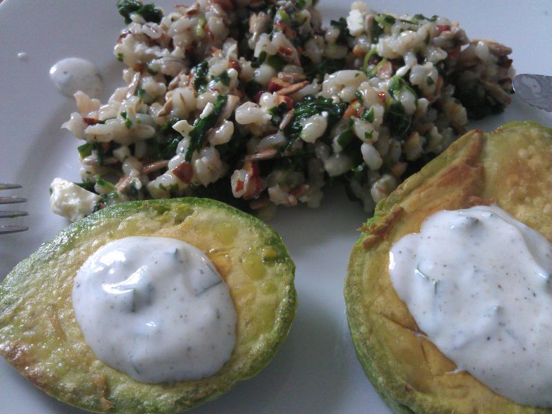 Gerösteter Brokkolie mit Gurkenstreifen und Erdnusssoße (S.93)