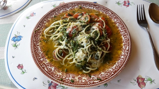 Ich habe die halbe Menge für zwei Personen gemacht. Von den Spaghetti habe ich nur 140g genommen, was für uns genau richtig war.